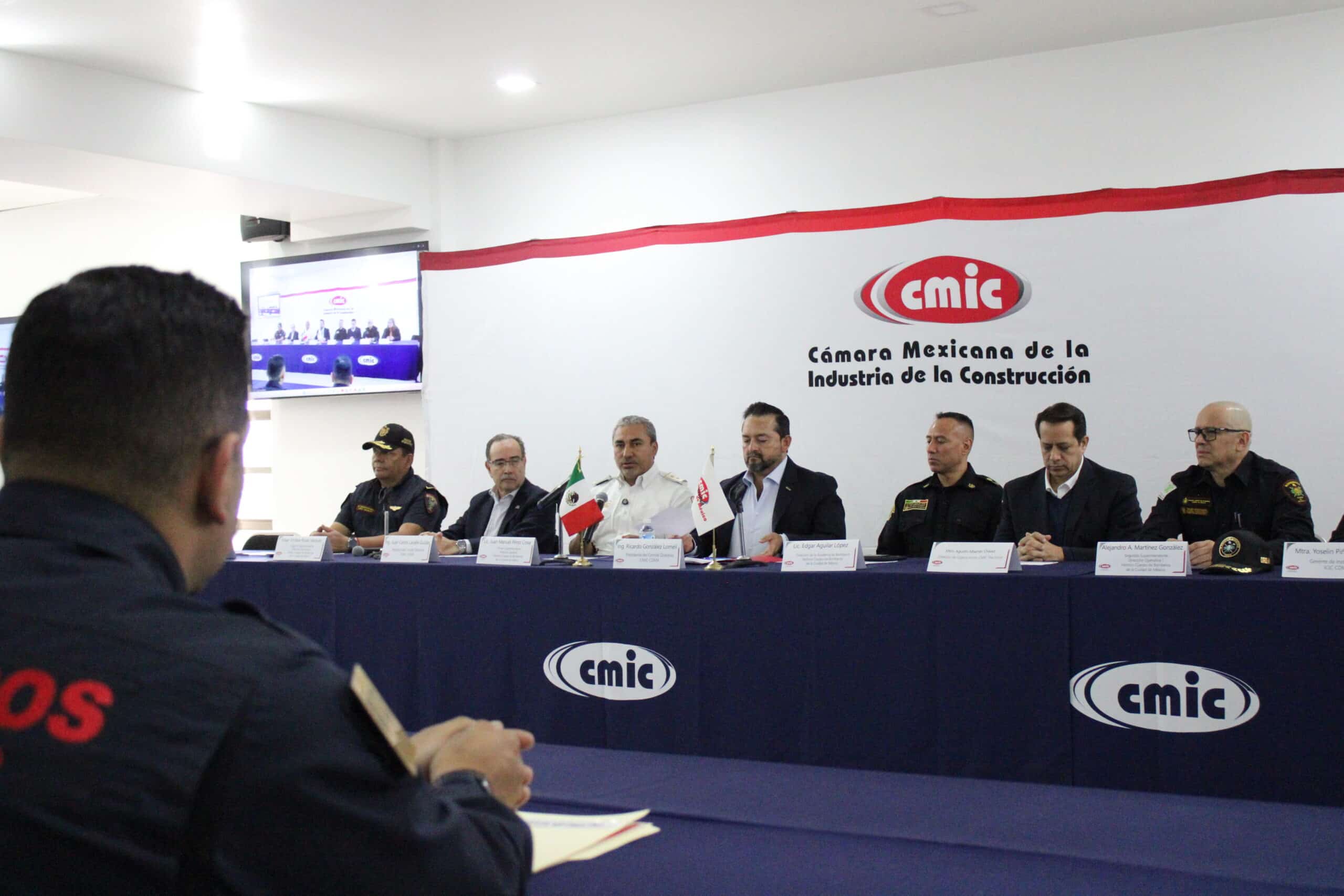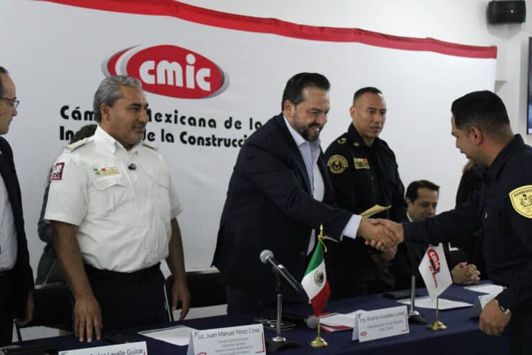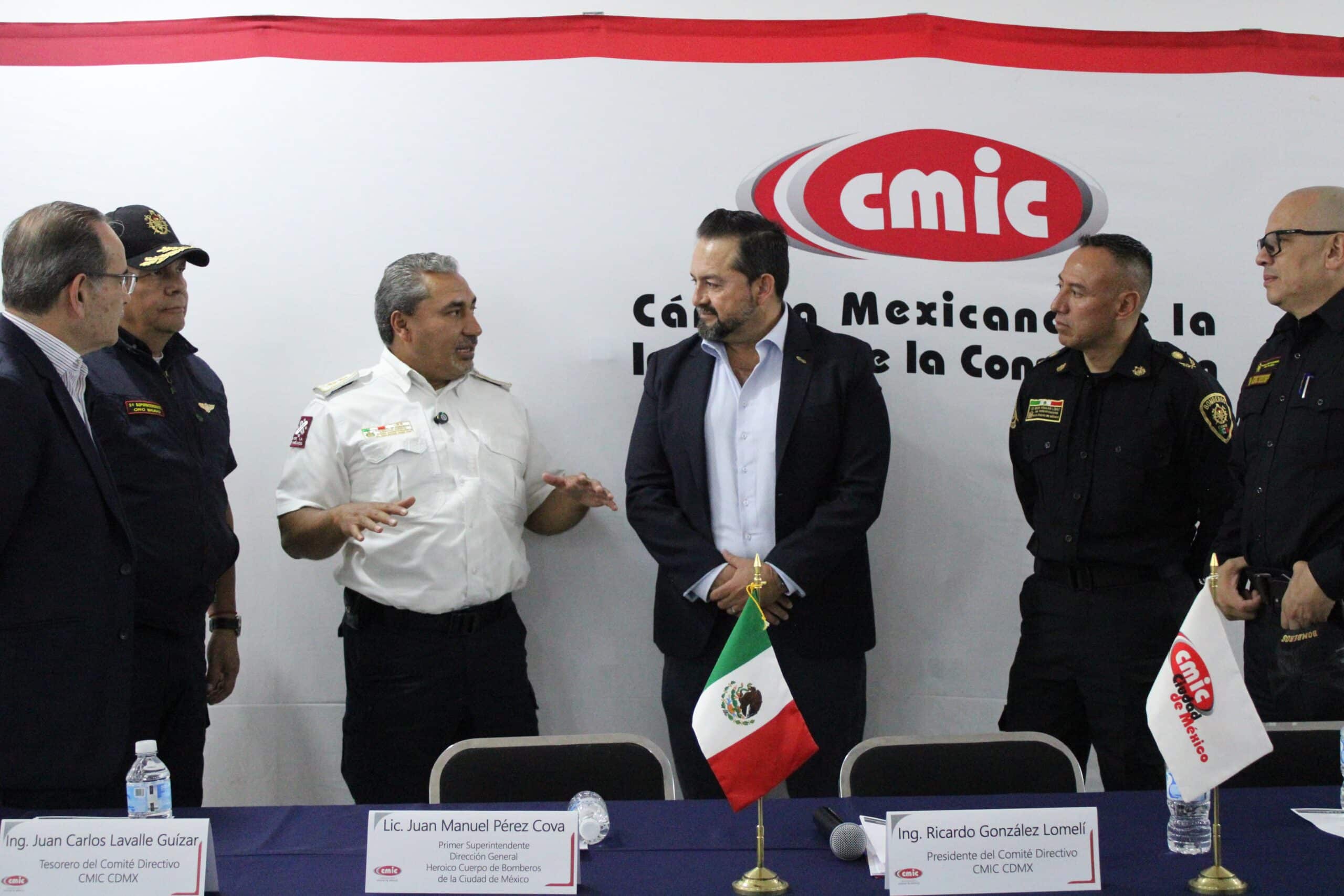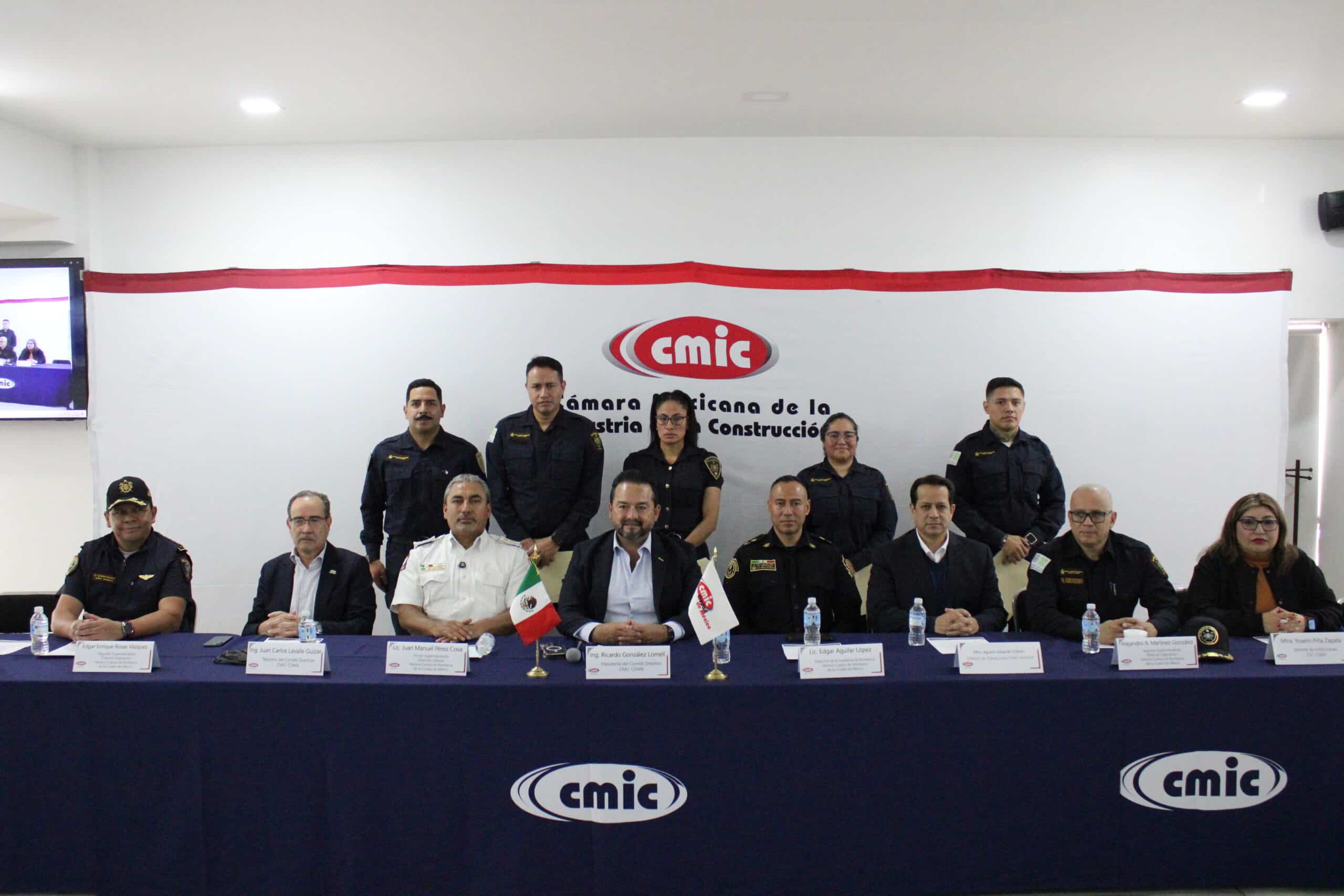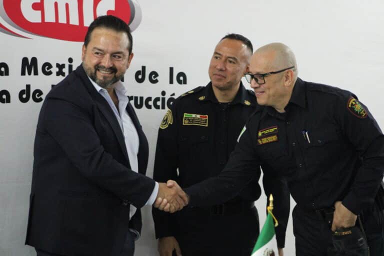 A través de las Coordinaciones de Seguridad y Resiliencia, así como de Equipamiento y Materiales de la Construcción, el 22 de mayo, el Presidente Delegacional de la CMIC CDMX, Ing. Ricardo González Lomelí, formalizó la firma de un convenio de colaboración con el Heroico Cuerpo de Bomberos de la Ciudad de México, representado por el Primer Superintendente, Lic. Juan Manuel Pérez Cova, con el objetivo de establecer un esquema de capacitación continua y bilateral entre ambas instituciones.
